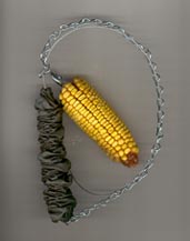 CORN RING $12.00 (includes shipping) Add to order Review order | Talk about entertainment, the squirrel bungee ("The Squngee") is the greatest! An ear of corn screws onto the end of a bungee cord that you hang from a tree limb or shepherd's crook; the squirrel jumps up to grab the corn and bounce-bounce-bounce. FUN! Another great "Squirrel Feeder" is made by Looker Products. You can place two ears of corn on the spikes and fill the tray with critter mix or bird-seed. This feeder is made of red cedar to last for years. Take a look at this "Corn Ring"! Spike an ear of corn, hang the feeder on a tree branch, and enjoy the "one-ring circus"!! Made in the USA of powder-coated steel. |