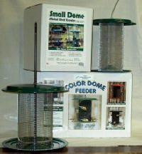 Screen feeders have become very popular over the past few years and my favorites are made by Bird Stuff. The dark green "Color Dome" is an all metal black oil sunflower seed feeder. It has a baked-on polyester finish with a stainless steel hopper. Chickadees, titmice, finches, woodpeckers and nuthatches cling to the screen to extract their seed and the 3" tray is big enough for cardinals! This feeder holds about 5 lbs of sunflower seeds. The matching "Small Dome" holds about 5 lbs of Nyjer (thistle) seed and can accommodate about 20 goldfinches!