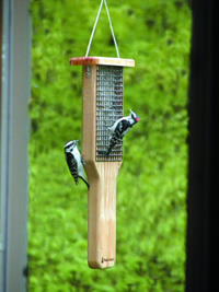 Don’t forget the woodpeckers (and chickadees, nuthatches, and titmice)! This "Woodpecker Feeder" holds peanut pieces or woodpecker mix. The cedar "Suet Feeder" holds two cakes of suet and the tail prop is long enough to support a pileated woodpecker!