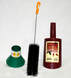 Sometimes it can be a challenge to fill up your birdfeeder, especially tube feeders with narrow-top openings. Here's the perfect solution - the scoop/funnel! Use it to scoop the seed out of your seed bin then hold it over the feeder, flip the lever and it becomes a funnel. I store my thistle in clean/dry gallon milk jugs. But how do you get the seed into the jug without spilling all over? The 'fit-fill' funnel fits on top of the jug and you simply pour the seed in - works great! Our "Feeder Accessory Kit" also includes a
